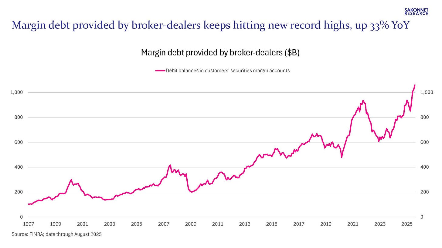 I published my last update on the numerous types of leverage/debt that have built up in the financial system (and inflated asset prices) a month ago (link); it’s time for another. Leverage keeps going up, up, and up, which continues to inflate asset prices. Margin debt provided by broker-dealers hit a new record high of $1.06 trillion in August, up an eye-watering 33% vs. a year ago. (This figure doesn’t capture reverse repo, margin loans from banks or other non-bank lenders, and margin-like products such as total return swaps.)